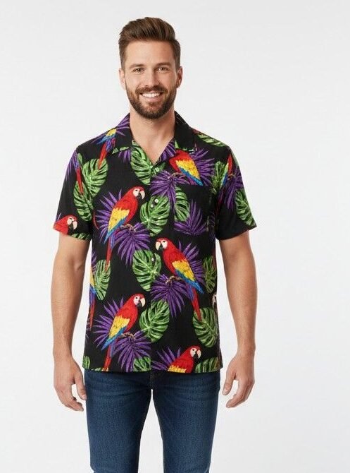 Men’s Parrot Style Print Short-Sleeve Button-Up Hawaii Shirt