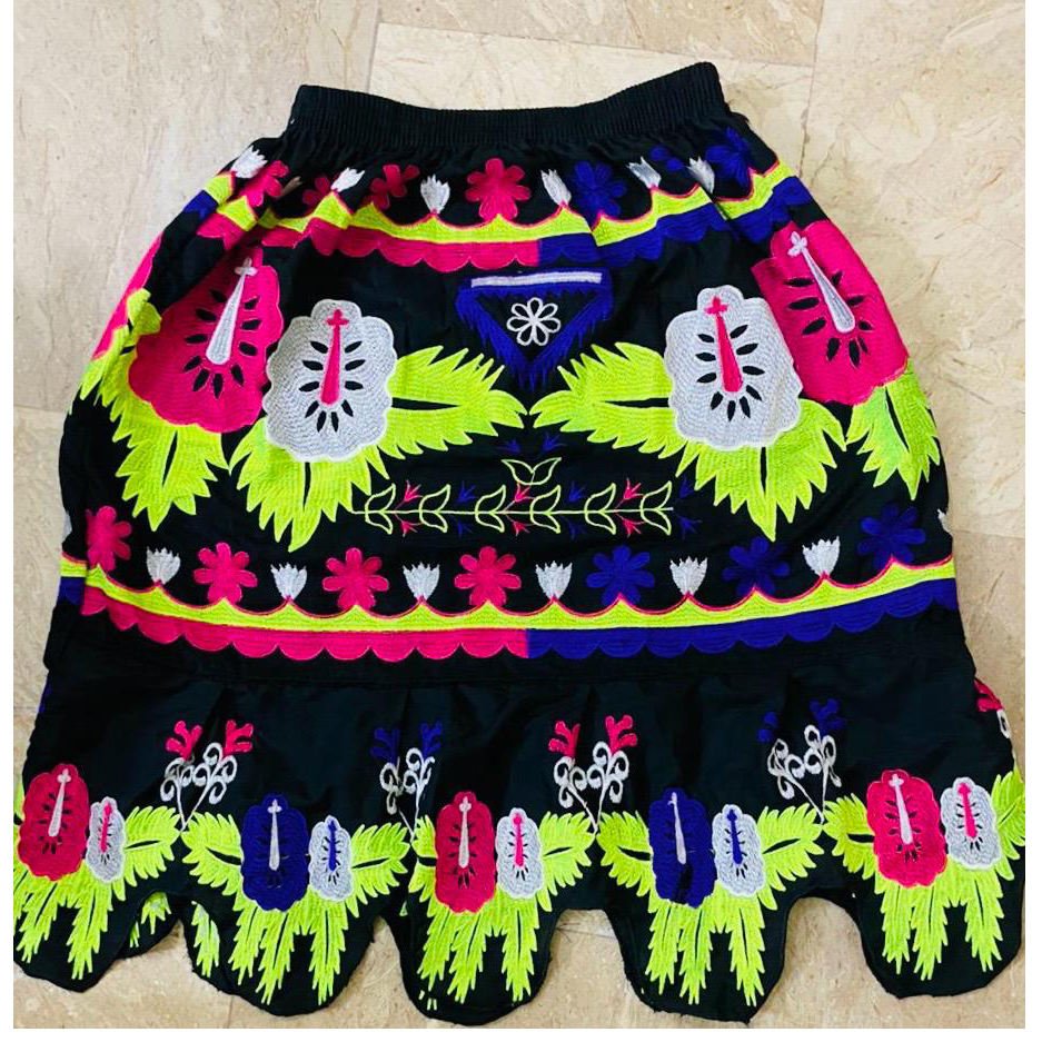 / Traditional Embroidered Influence of Green Red Blue color Skirt