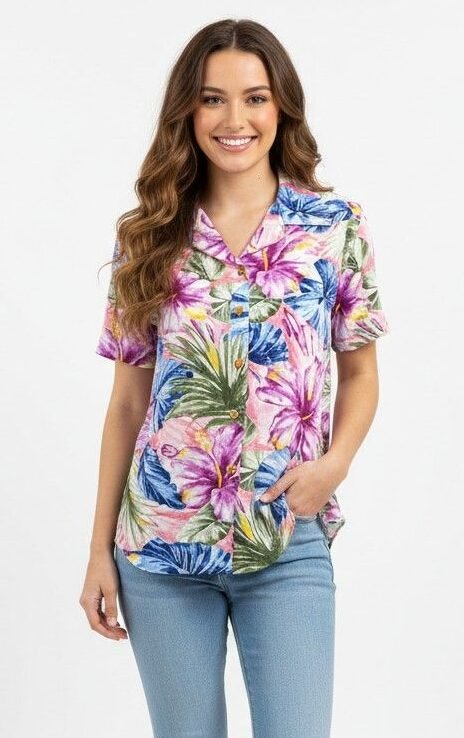 Women’s Multicolor Floral Short-Sleeve Button-Up Hawaii Shirt